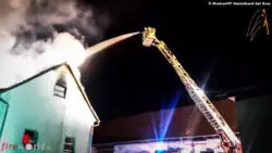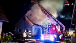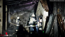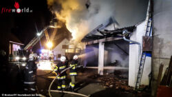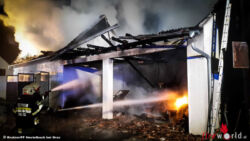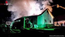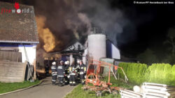 Zur selben Zeit wurde auch der Besitzer auf das Feuer aufmerksam, welches in seinem Wirtschaftsgebäude wütete. Geistesgegenwärtig konnte er noch zwei Fahrzeuge aus dem Wirtschaftsgebäude, das auch als Garage genutzt wird, retten. Minuten später stand das gesamte Gebäude in Vollbrand. Fünf Feuerwehren rückten zum Einsatzort aus.
