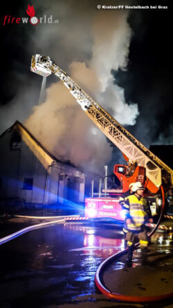 Stmk: Fünf Feuerwehren bei Wirtschaftsgebäudegroßbrand in Nestelbach bei Graz