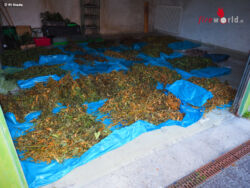 Noch in der Nacht wurden ca. 800 Cannabispflanzen und etwa 2 bis 3 kg zubereitungsfertiges Marihuana beschlagnahmt. Den erheblichen Strombedarf hatte sich der Täter beschafft, indem er die öffentliche Stromleitung durch Umgehung des Zählers anzapfte. Der Wert der beschlagnahmten Drogen kann derzeit noch nicht beziffert werden. Er dürfte sich letztendlich aber um mehrere 10.000 Euro handeln.