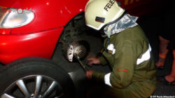 Grund dafür war wie schön öfter in diesem Jahr eine Fahrzeugbergung auf der L137. Nach kurzer Zeit trafen Rüst und Tank an der Einsatzstelle ein und die Kameraden staunten nicht schlecht, als ein Pkw mit einem verkeilten Vorderreifen auf der Fahrbahn stand. Aus unbekannter Ursache fehlten bei dem linken Vorderrad vier von insgesamt fünf Radbolzen.