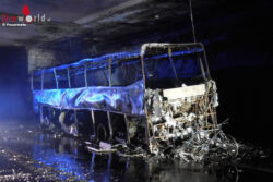 Stmk: Zu Campingfahrzeug umgebauter Autobus im Gleinalmtunnel in Vollbrand