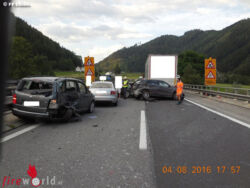 Kurz nach dem Alarm für den Brand im Gleinalmtunnel wurde die Freiwillige Feuerwehr Leoben-Stadt von der Bereichsfunkleitstelle Florian Leoben per Funk über einen Unfall auf der S6 Fahrtrichtung Leoben Höhe Auwald informiert. Aus unbekannter Ursache kam es zu Kollision von 5 Fahrzeugen. Zu diesem Einsatz rückte das SRF (schweres Rüstfahrzeug) aus, unterstützt von Kräften der Freiwilligen Feuerwehr Kraubath. Die ersteingetroffenen Einsatzkräfte konnten rasch die Meldung absetzen, dass keine Personen eingeklemmt sind. Dieser Unfall trug dazu bei, dass der Verkehr auf der S6 und A9 zum Erliegen kam. Die Einsatzkräfte entfernten die Fahrzeuge, führten Aufräumarbeiten durch und rückten um 19:45 Uhr wieder in die Feuerwehrhäuser ein.