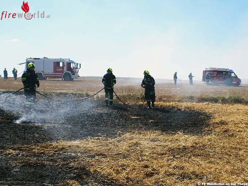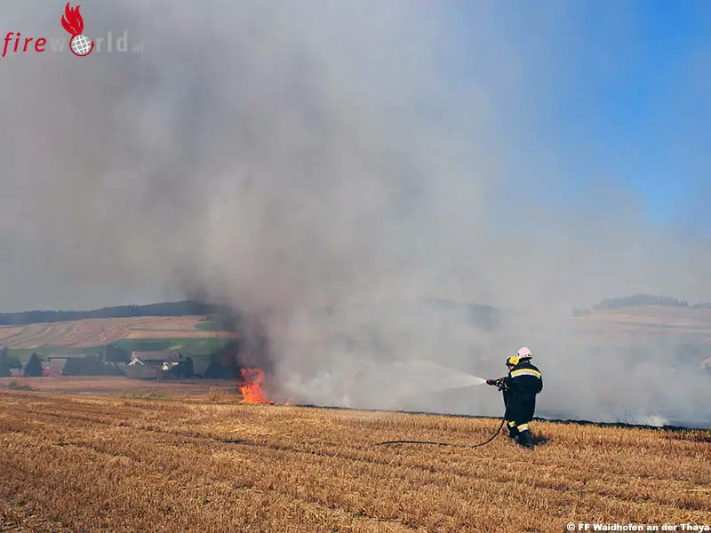 WAIDHOFEN AN DER THAYA (NÖ): Am 8. August 2016, um 14.40 Uhr, wurden die Feuerwehren Waidhofen/Thaya und Altwaidhofen zur Unterstützung bei einem Feldbrand in Hollenbach alarmiert. Die bereits im Einsatz stehende Feuerwehr Hollenbach hatte Tanklöschfahrzeuge angefordert.