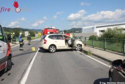 RAINFELD (NÖ): Am 7. August 2016, um 15.39 Uhr, wurde die Feuerwehr Rainfeld zusammen mit den Feuerwehren St. Veit und Rohrbach zu einem Verkehrsunfall mit einer eingeklemmten Person zur Halbachbrücke auf der B18 alarmiert.