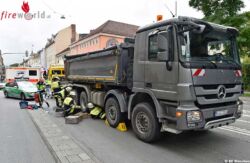 Die Einsatzkräfte unterbauten den Achsbereich und hoben ihn zur kompletten Befreiung mit pneumatischen Hebekissen an. Nach einer ambulanten Versorgung transportierte der Notarzt die Schwerstverletzte in den Schockraum einer Klinik. Der Lkw-Fahrer erlitt einen Schock und wurde vom Kriseninterventionsteam betreut. Ebenso benötigten mehrere Beobachter des Unfalls eine Betreuung. Die Polizei hat die genauen Unfallermittlungen aufgenommen.