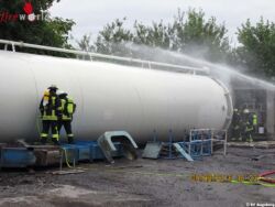 Zudem wurden sogenannte „Fog-Nails“eingesetzt. Dabei handelt es sich um etwa 50 cm lange Lanzen, die durch die Wandung des Silos getrieben wurden und im Inneren fein vernebeltes Löschmittel abgeben. Die Brandursache ist bislang Unklar, da im fraglichen Zeitraum keine Arbeiten am Silo stattfanden. Die Einsatzdauer betrug zwei Stunde. Um ein wiederentflammen zu verhindern werden Feuerwehrleute bis morgen früh regelmäßig Kontrollmessungen vornehmen.