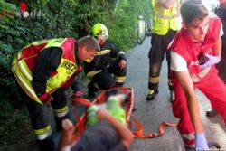 Bereits zum zweiten Einsatz wurde die FF Guntramsdorf am Montag Morgen um kurz vor 8 Uhr alarmiert. Ein Arbeiter hatte sich bei Baumschnittarbeiten im Böschungsbereich des Mühlbaches am Bein so schwer verletzt, dass der anwesende Rettungsdienst für den Abtransport die FF Guntramsdorf alarmierte. Mittels Rettungswanne (Korbschleiftrage) wurde die verletzte, jedoch ansprechbare Person über den Mühlbach getragen und zur weiteren Versorgung dem Roten Kreuz übergeben. Nach wenigen Minuten war dieser Einsatz beendet und die Kräfte Guntramsdorf konnten wieder einrücken.