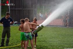 Der Schaumteppich und eine selbst gegrillte Wurst ließen den gemeinsam verbrachten Nachmittag gemütlich ausklingen. Für die Erwachsenen war die Simulation, was passiert, wenn man einen Fettbrand mit Wasser löscht, der Höhepunkt. In einem geschlossenen Raum ohne schwerverletzte Personen undenkbar. Die Gewalt einer derartigen Fettexplosion wurde eindrucksvoll dargestellt.