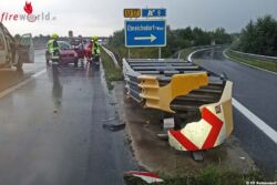 Nach Absichern der Einsatzstelle wurde eine Erkundung durch den Einsatzleiter durchgeführt. Aus zurzeit unbekannten Gründen prallte ein Pkw gegen den Leitschienen-Aufpralldämpfer bei der Abfahrt Ebreichsdorf-West und kam danach auf dem ersten Fahrstreifen zum Stillstand. Eine verletzte Person sowie zwei Hunde ohne Beißkorb befanden sich im verunfallten Fahrzeug.