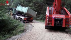 Stmk: Lkw droht auf einer Forststraße abzustürzen