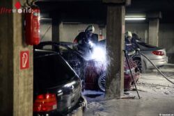 Im Zuge der Erkundung wurde ein, in Vollbrand stehender, Pkw in einem hinteren Teil, der zum Objekt gehörigen Tiefgarage festgestellt. Da sich keine Personen innerhalb des Gefährdungsbereiches befanden, konnte sofort die Brandbekämpfung unter Atemschutz mit einem Rohr Druckluftschaum vorgenommen werden.