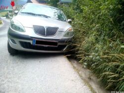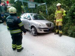Oö: Pkw bleibt in einer Entwässerungsrinne hängen