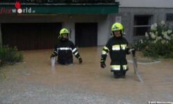Allein im Bereich Mürzzuschlag standen gegen 16.00 Uhr 13 Feuerwehren mit 33 Fahrzeugen und über 200 Freiwillige FeuerwehrkameradInnen im Einsatz. Zahlreiche Straßen waren überflutet, Keller wurden überschwemmt und sogar eine Hangrutschung im Bahnbereich in Spital forderte die Einsatzkräfte. Derzeit hält der Regenschauer noch an.