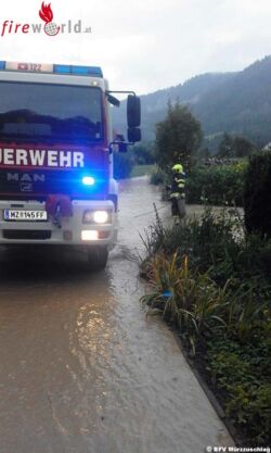 MÜRZZUSCHLAG (STMK): Neuerliche Regenfälle haben heute am Montag, den 15. August 2016 wieder dazu geführt, dass Feuerwehrleute zu Unwettereinsätze ausrücken mussten.