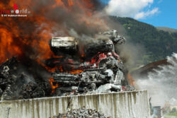 Tirol: Großer Haufen an Autowracks in Nußdorf-Debant in Flammen