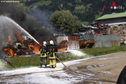 NUSSDORF-DEBANT (TIROL): Am Sonntag, den 14. August 2016, wurde die Feuerwehr Nußdorf-Debant um 11:31 mittels Pager zu einem kleinen Brand im Freien im Areal des Abfallwirtschafzentrums alarmiert. Schon bei der Anfahrt wurde mittels Sirene die komplette Feuerwehr Nußdorf-Debant nachalarmiert, da es sich um einen Großbrand eines Müllhaufens im Areal der Firma handelt.