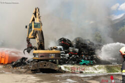 Der gesamte Müllhaufen musste mit firmeneigenem Bagger mehrmals umgegraben werden. Mit Schaum und Netzmittel wurde der Brand schlussendlich unter Kontrolle gebracht. Insgesamt wurden 3800 Liter Schaummittel sowie 21 Stk. CFK-Flaschen und 30 Stk. Stahlflaschen für den Atemschutz verbraucht.