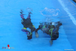 Nach dem Mittagessen stand eine Vorführung des Tauchdienstes Burgenland am Programm. Im Freibad Mattersburg, das wir freundlicherweise benutzen durften, erklärten uns erfahrene Taucher ihre Ausrüstung. Wer wollte, durfte dann selbst einmal das Atmen unter Wasser versuchen und eine Runde mit der Ausrüstung tauchen.