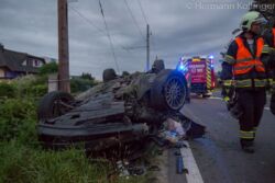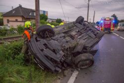 Er kam auf den Grünstreifen und fädelte bei einem Strommast der Linzer Lokalbahn ein. In der Folge überschlug sich das Auto und kam am Dach liegend zum Stillstand. Nachdem einige Autolenker einfach weiterfuhren (Angaben von Nachkommenden), halfen ihm Passanten dann unverletzt aus dem Unfallfahrzeug.