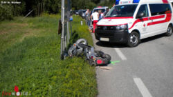 ST. MICHAEL (STMK): Am 18.08.2016 wurde die Freiwillige Feuerwehr St. Michael in der Obersteiermark um 15:28 Uhr zu einem Verkehrsunfall zur Abfahrt der S6, St. Michael Ost, alarmiert. Aus unbekannter Ursache kollidierte ein Moped mit einem Pkw, wodurch dessen Lenker sowie eine weitere Person auf dem einspurigen Kraftfahrzeug schwer verletzt wurden.