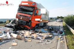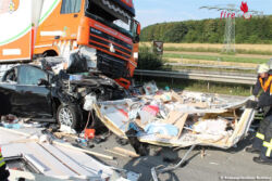 Deutschland: Lkw schiebt Wohnwagengespann auf vorderen Lkw → 1 Todesopfer