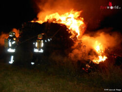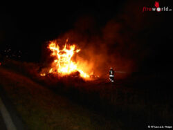 Nö: Gestapelte Strohballen in Laa an der Thaya lichterloh in Flammen