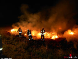 Vor Ort wurde festgestellt, dass aufgestapelte Strohbälle in Vollbrand standen. Auf Grund der starken Rauchentwicklung sowie einer hohen Hitzestrahlung wurde ein Löschangriff unter Atemschutz vorgenommen. Der Atemschutztrupp begann mit Einreißhaken, das Stroh zu verteilen, um eine Brandbekämpfung zu ermöglichen.