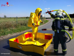 SCHWECHAT (NÖ): Am 20.08.2016 kurz nach Mittag wurde die Freiwillige Feuerwehr Schwechat, sowie die Freiwillige Feuerwehr Schwechat-Rannersdorf zu einem Schadstoffeinsatz mit den Alarmstichworten „Schadstoffaustritt aus Lkw“ alarmiert.