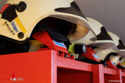 Die Helmhalterung ist flexibel ausgeführt und gewährleistet eine zügige Helmaufnahme mit einer Handbewegung. Die Entnahme geht rasch und ist auch für kleinere Frauen und Männer kein Problem. Durch die Helmhalterung auf der Spindoberseite bleibt mehr Raum im Spind frei, welcher zumeist für Feuerwehrhandschuhe oder aber auch zur Ablage für die persönlichen Gegenstände benützt werden kann, während des Einsatzes.