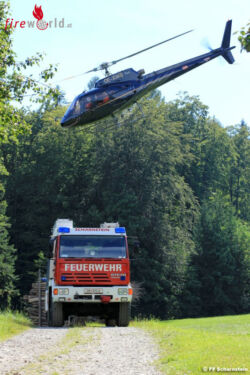 SCHARNSTEIN (OÖ): Einsatzübung – Flugnotfall mit Waldbrand Flugplatz Scharnstein (LOLC) → Einsatzorganisationen trainieren gemeinsam mit dem Hubschrauber des BMI und Firma Heli-Art.