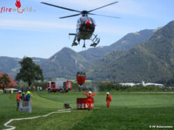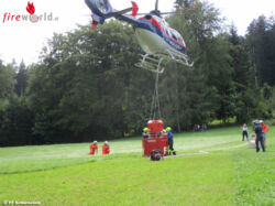 Auch die Betankung der Löschbehälter im Laudachsee wurde von den Piloten trainiert. Nachdem Erreichen des Übungszieles wurden wieder alle Gerätschaften und Mannschaften von der Einsatzstelle ins Tal geflogen. Bei der Übungsbesprechung wurde der Ablauf der Übung nochmals durchgegangen und besprochen. Erfahrungen die gemacht werden konnten, werden in künftige Ausbildungs- und Einsatztaktik miteinfließen werden.