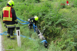 Motorradbergung: Zur Bergung eines Verunfallten Motorrades in Fahrtrichtung Sulz wurde die Wehr am 19.08.2016 alarmiert. Da das schwere Motorrad verkehrt im Straßengraben lag, wurde zur Unterstützung der Lkw mit Ladekran der Marktgemeinde geholt. Dadurch konnte das Motorrad schonend herausgehoben werden und wurde am Wirtschaftshof gesichert abgestellt. Rund eine Stunde standen 6 Kräfte mit 2 Fahrzeugen im Einsatz.