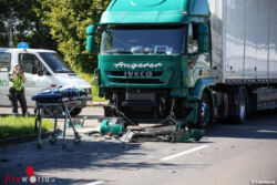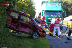 WELS (OÖ): Einen Schwerverletzten forderte Mittwochnachmittag, 24. August 2016, ein schwerer Kreuzungscrash zwischen einem Lkw und einem Pkw in Wels-Schafwiesen.