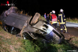 SCHLITZ (DEUTSCHLAND): Zu einem schweren Verkehrsunfall kam es am Donnerstagabend, 25. August 2016, auf der Kreisstraße zwischen den Schlitzer Ortsteilen Pfordt und Fraurombach. Unweit des dortigen Badesees überschlug sich ein Auto mit fünf Insassen mehrfach.