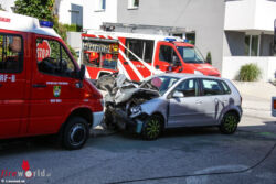 Im Kreuzungsbereich der Römerstraße mit der Stelzhamerstraße kollidierten laut ersten Informationen ein Pkw und ein Kleintransporter. Der Kleintransporter überschlug sich anschließend, zwei abgestellte Fahrzeuge wurden ebenfalls schwer beschädigt. Die Verletzten wurden vom Rettungsdienst versorgt und anschließend ins Krankenhaus eingeliefert. Die Feuerwehr führte die Aufräumarbeiten an der Unfallstelle durch. Der umgestürzte Kleintransporter wurde wieder auf die Räder gestellt.