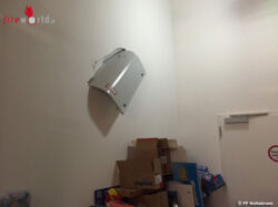 In weiterer Folge wurde ein stark beschädigter Steuerungskasten für die Rauch- und Wärmeabzugsanlage vorgefunden in dem zwei Batterien installiert waren. Durch eine Knallgasexplosion wurde der Steuerungskasten stark beschädigt. Die Abdeckung des Steuerungskasten steckte etwa 10 Meter weit entfernt in einer Mauerwand fest.