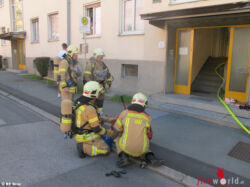 Der Brand konnte schlussendlich von der Berufsfeuerwehr rasch unter schwerem Atemschutz mit einem C-Rohr gelöscht werden. Der toxische Brandrauch wurde mit einem Hochleistungslüfter aus der Wohnung entfernt. Die aus der verrauchten Brandwohnung gerettete und unbestimmten Grades verletzte Person wurde vom Roten Kreuz versorgt. Der durch den Brand entstandene Schaden wird auf ca. 5.000 € geschätzt. Als Brandursache wurde ein auf einer eingeschalteten Herdplatte stehender Toaster festgestellt.