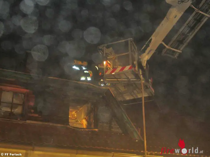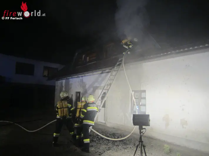 Mehrere Personen die sich im Haus befunden hatten, konnten sich ins Freie retten. Zwei Atemschutztrupps der FF Ferlach und Kirschentheuer drangen durch das Innere in das erste Obergeschoß vor, ein Atemschutztrupp der FF Ferlach über eine Leiter. Die Atemschutztrupps hatten mit großer Hitze und sehr starker Rauchentwicklung zu kämpfen, da sich die Wohnung bereits im Vollbrand befand.