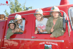 Was passiert, wenn wir den Feuerwehrnotruf 122 wählen? Wie wird die Feuerwehr alarmiert? Wie verläuft eigentlich ein Funkgespräch? Natürlich durften die Jugendlichen auch selbst den Funkverkehr ausprobieren. Die Sachgebiete Öffentlichkeitsarbeit und Dokumentation sowie Feuerwehrgeschichte wurden in einer Station zusammengefasst. Die Bezirkssachbearbeiter Sascha Drlo und Anton Mück erläuterten kurz die Aufgaben für ihr Sachgebiet, ehe schon praktisch gearbeitet werden musste. Es musste ein Foto und ein Plakat für einen Tag der offenen Tür gestaltet werden. Sehr kreative Ideen waren das Ergebnis dieser Station. Im Bereich Schadstoffdienst wurde von Bezirkssachbearbeiter Georg Wölzl der bei der Feuerwehr Gars am Kamp stationierte Schadstoffcontainer erklärt. Die Jugendlichen kamen aus dem Staunen nicht heraus, wie viele verschiedenste Ausrüstungsgegenstände in dem Container untergebracht waren. Bezirkssachbearbeiter für vorbeugenden Brandschutz Ing. Thomas Berner demonstrierte bei seiner Station, wie sich verschiedene Baumaterialien unter Flammeneinwirkung verhalten. Aber auch Brandschutzpläne, Rauchmelder usw. wurden den Jugendlichen erklärt. Für den Katastrophenhilfsdienst war der Unimog und die Sonderpumpanlage der Feuerwehr Horn zu besichtigen bzw. waren die Kids gefordert, mit dem Kran des Unimogs verschiedene Hebeübungen selbst zu machen.