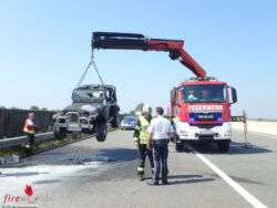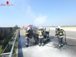 In wenigen Minuten war der Fahrzeugbrand denn abgelöscht. Nach Eintreffen der Autobahnpolizei und der ASFINAG-Autobahnmeisterei führte die FF Grafenwörth noch die Fahrzeugbergung mittels Kran durch und reinigte die Fahrbahn von den Brandrückständen. Nach Rückkehr im Feuerwehrhaus wurden dann noch die Atemschutzgeräte wieder einsatzbereit gemacht, der Tank des Rüstlöschfahrzeuges gefüllt und einige Berichte geschrieben – mit etwas Verspätung bekamen die Feuerwehrleute dann doch noch ihr Mittagessen.