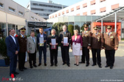 Nach der Fahrzeugvorstellung erfolgte die Segnung des WLF und WLA Atemschutz gemeinsam durch den Feuerwehrkuraten Mag. Markus Lehr und den Pfarrer Mag. Petar Kristicevic. Im Anschluss daran folgten die Auszeichnungen verdienter Feuerwehrmitglieder mit Abzeichen und Medaillen des Bundes-, Landes- und Bereichsfeuerwehrverbandes. Insgesamt wurden 26 Kameradinnen und Kameraden sowie 3 Ehrengäste ausgezeichnet. Nach den Auszeichnungen führten einige Ehrengäste ihre Ansprachen aus und erwähnten die Wichtigkeit der Freiwilligen Feuerwehren, Betriebsfeuerwehren und solcher Sonderfahrzeuge, die steiermarkweit stationiert sind.