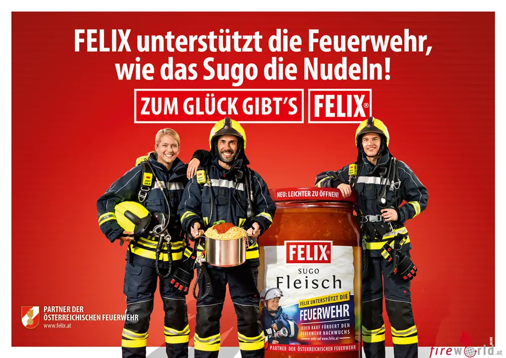 Aus- und Fortbildung ist wichtiger Bestandteil in der Förderung des Nachwuchses. Daher setzt die Zusammenarbeit zwischen FELIX und der österreichischen Feuerwehr genau hier an: ein Teil des Verkaufserlöses einer FELIX Ketchup und FELIX Sugo Aktion wandert in die wichtige österreichische Feuerwehrjugendarbeit. Unterstützt wird diese Aktion sogar durch eine österreichweite Plakatkampagne.