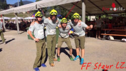 Das Team bestehend aus Aigner Helmut, Brunner Manuel, Mayr Christoph und Stecher Bernhard hat sich dieser Herausforderung gestellt. In der Wertung Firefighters 4x100m wurde die Schanze in Angriff genommen.