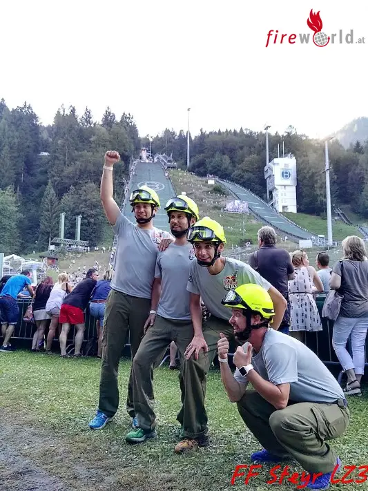 Das Team bestehend aus Aigner Helmut, Brunner Manuel, Mayr Christoph und Stecher Bernhard hat sich dieser Herausforderung gestellt. In der Wertung Firefighters 4x100m wurde die Schanze in Angriff genommen.