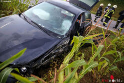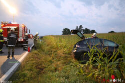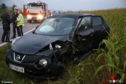 WALDNEUKIRCHEN (OÖ): Die Feuerwehren Bad Hall und Waldneukirchen wurden am Morgen des 2. September 2016 gegen halb sechs zu einem Verkehrsunfall auf der Voralpenbundesstraße B122 gerufen. Zwei Pkw waren in etwa auf Höhe der Firma Packit gegeneinandergeprallt und von der Fahrbahn geschleudert worden.