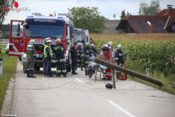 Der Unfall ereignete sich auf der Eggendorfer Straße im Gemeindegebiet von Sipbachzell. Eine junge PKW-Lenkerin kam laut ersten Informationen aus bislang unbekannter Ursache von der Straße ab, fuhr über eone Böschung in die angrenzende Wiese und krachte dann gegen einen Mittelspannungsmasten. Weil die Stromleitungen gerissen sind und teilweise abstürzten, konnten die Rettungsmaßnahmen nur sehr vorsichtig begonnen werden. Nach der Freigabe durch die Energie AG konnte die Feuerwehr die Fahrzeuglenkerin aus dem Unfallwrack befreien. Die Schwerverletzte wurde nach der Erstversorgung durch Rettungsdienst und Notarzt ins Klinikum Wels eingeliefert.