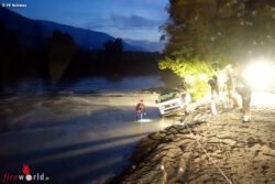 Weil der zu Hilfe gerufene ÖAMTC nicht über die notwendigen Mittel verfügte, um die beiden Fahrzeuge von der Sandbank zu holen, musste schlussendlich die Feuerwehr ran. Besonders bewährt hat sich einmal mehr der Unimog der Feuerwehr Schwaz mit seiner 5 Tonnen Vorbauseilwinde. Das geringe Gewicht, die kompakte Bauweise, Allrad und Singlebereifung – perfekt für die Verhältnisse vor Ort.