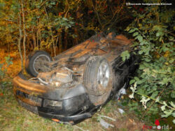 HANSTEDT (DEUTSCHLAND): Den Großeinsatz der Feuerwehr löste ein sich zwischen Sahrendorf-Schätzendorf und Undeloh ereignender Verkehrsunfall aus. Gegen 0:00 Uhr kam in der Nacht auf den 8. September 2016 ein Pkw aus Richtung Undeloh kommend von der Fahrbahn ab, touchierte mehrere massive Bäume und blieb nach einem Überschlag schließlich auf dem Dach liegen.