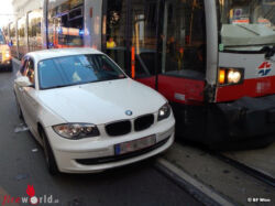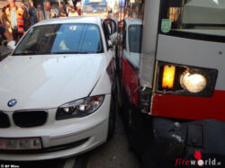 Wien: Verkehrsunfall Pkw und Straßenbahn: Fahrzeuglenkerin über Heckklappe befreit