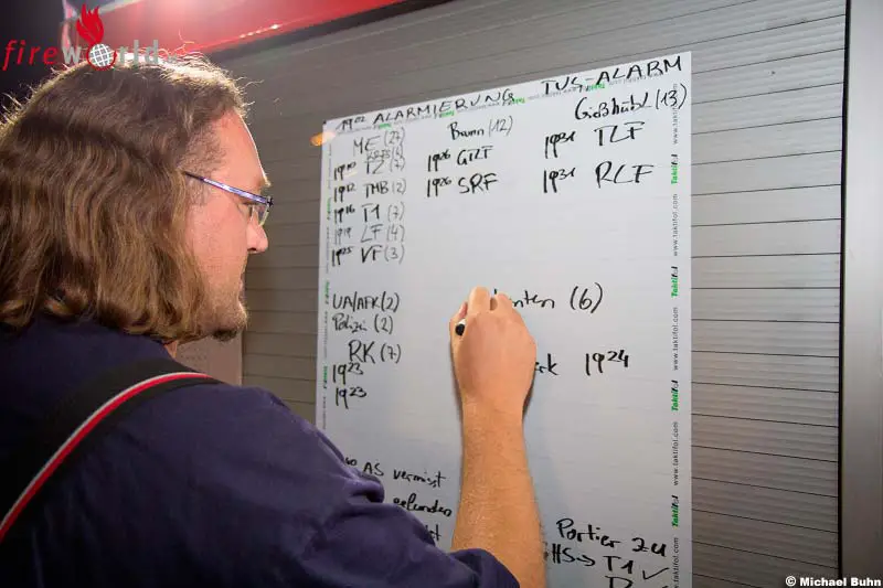 Die eintreffenden und nachkommenden Feuerwehr-und Rettungsfahrzeuge wurden auf der Bereitstellungsfläche, vor dem Bürogebäude, positioniert. Während der Einrichtung der Einsatzleitung, unweit der Zufahrt zum Areal, gelang der polizeilichen Sondereinheit der wichtige Zugriff. Der Attentäter, welcher zuvor mehrere Brände gelegt hat, verunfallte am Betriebsgelände und krachte mit seinem Fluchtfahrzeug in eine Begrenzungsmauer, neben den Zapfsäulen der internen Tankstelle. Dabei kam der Pkw seitlich zum Liegen, wodurch die Person im Fahrgastraum eingeschlossen wurde.